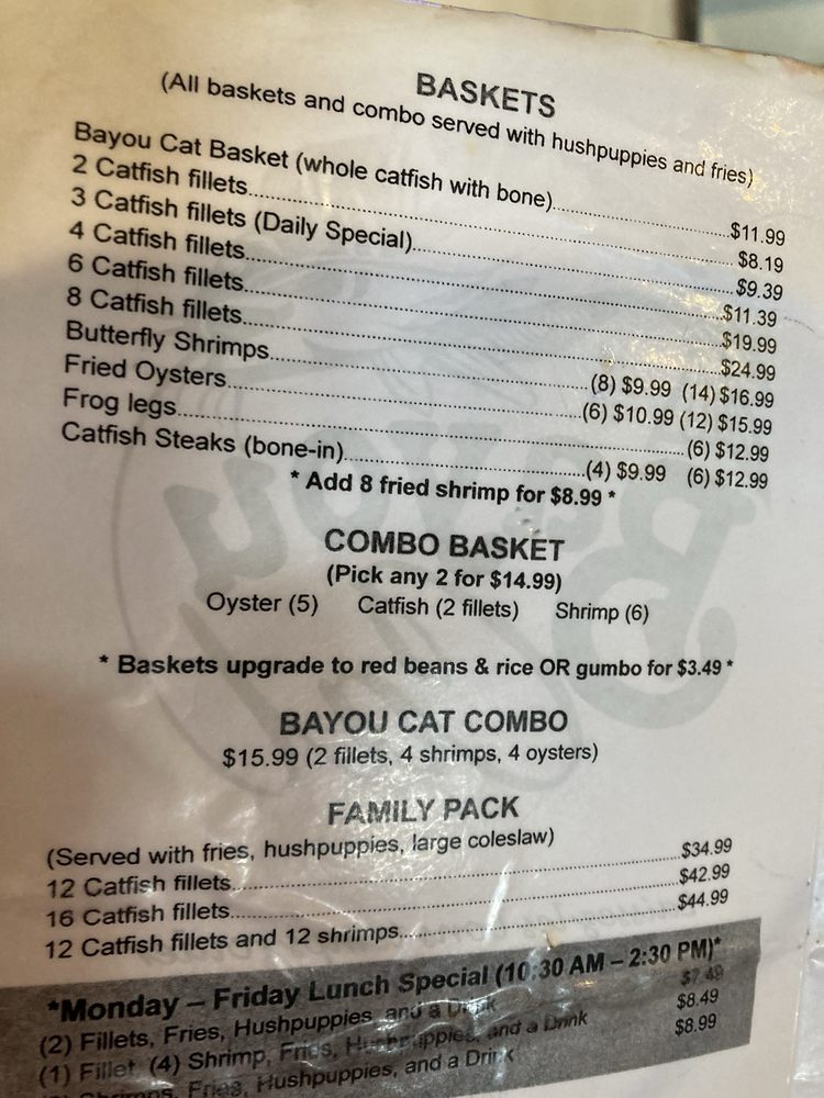 Bayou Cat Restaurant in Arlington, TX, stands out as the go-to place for top-notch seafood. With a wide range of options from crawfish to Po Boys, the menu offers a delightful variety for seafood enthusiasts. The crispy catfish, juicy frog legs, flavorful turkey neck, and moist chocolate cake dessert are just a few highlights praised by patrons. The shrimp Po Boy is a standout dish, perfect for those who prefer a delicious, non-crawfish option. The restaurant's consistent flavor, quick service, and vibrant atmosphere make it a must-visit spot. Whether you're a seafood lover or just looking for a satisfying meal, Bayou Cat Restaurant exceeds expectations with its delectable offerings and welcoming ambiance.